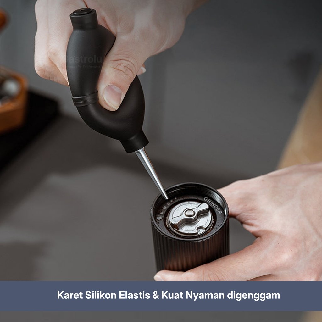 Dust air blower adalah alat pembersih manual yang digunakan untuk menghilangkan debu atau partikel halus dengan hembusan udara tanpa menyentuh langsung permukaan alat. Alat ini sangat berguna untuk membersihkan peralatan sensitif seperti grinder kopi, portafilter, lensa kamera, maupun perangkat elektronik.