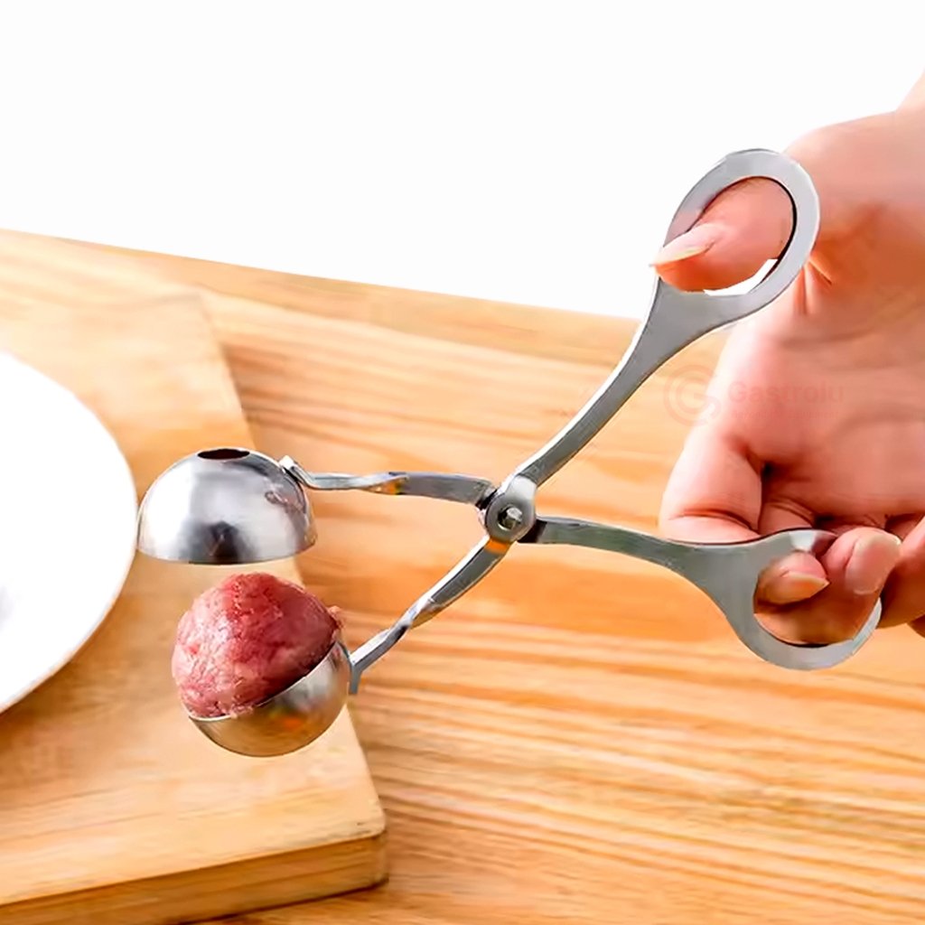 Cetakan bakso stainless steel yang dirancang untuk memudahkan proses membuat bakso dengan bentuk bulat rapi dan ukuran yang seragam.