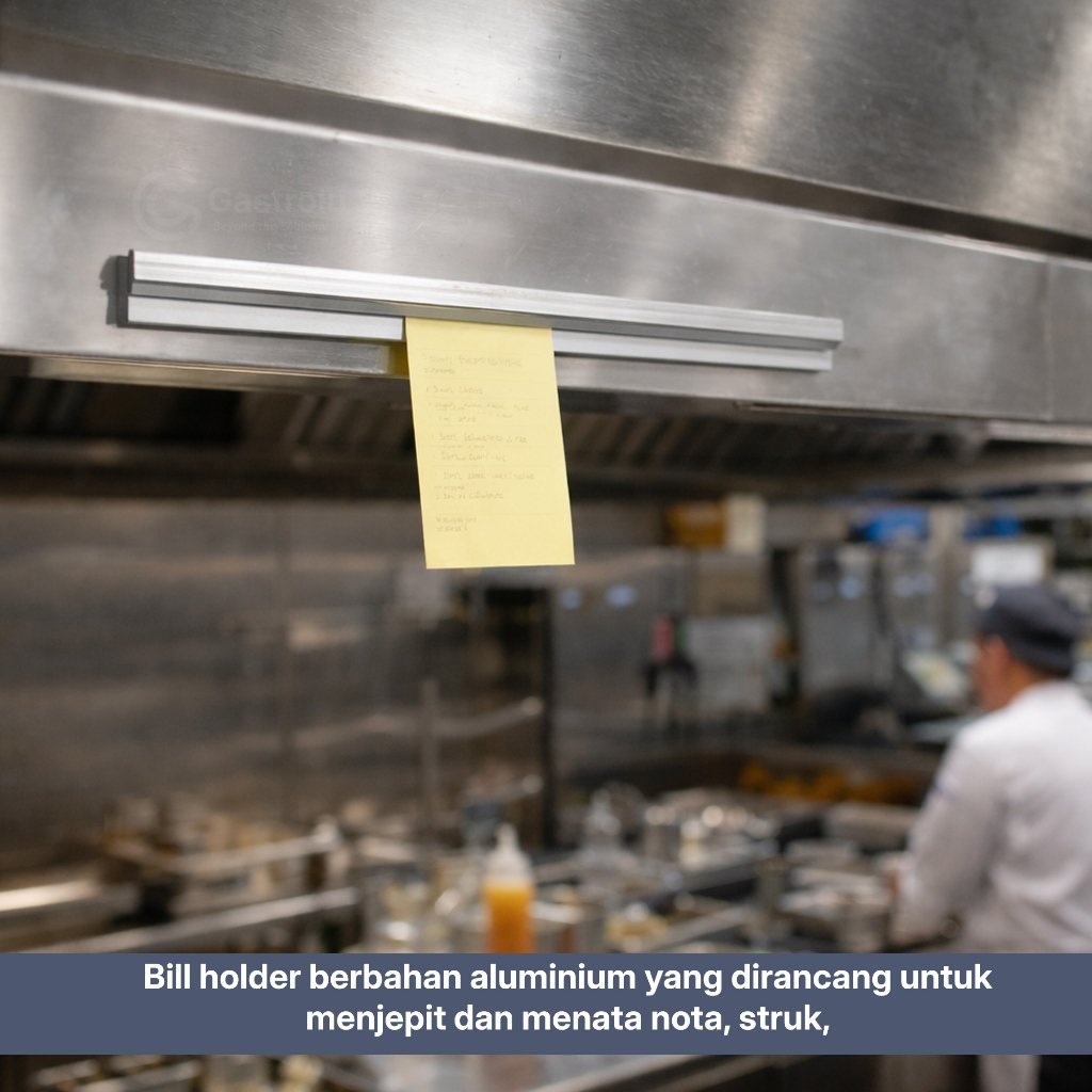 Bill holder berbahan aluminium yang dirancang untuk menjepit dan menata nota, struk, atau bon transaksi secara rapi di area kasir, dapur, dan service counter. Cocok untuk restoran, cafe, bar, dan usaha F&B dengan volume transaksi tinggi.