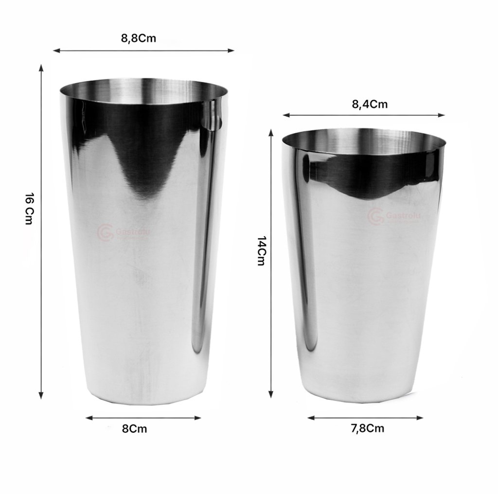 Boston shaker merupakan alat utama dalam pembuatan cocktail dan berbagai minuman mixology. Set ini terdiri dari dua cup stainless steel dengan ukuran berbeda yang dirancang untuk mencampur minuman dengan cepat dan merata.