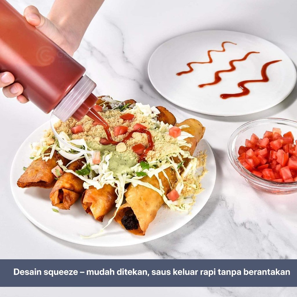 Botol ini cocok digunakan untuk berbagai jenis saus seperti saus tomat, sambal, mayonaise, kecap, salad dressing, maupun cairan dapur lainnya.