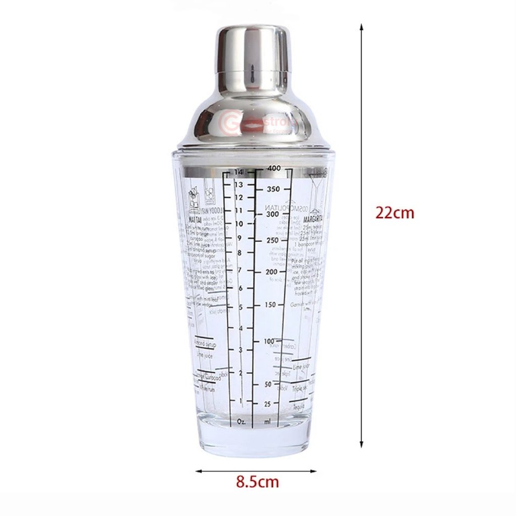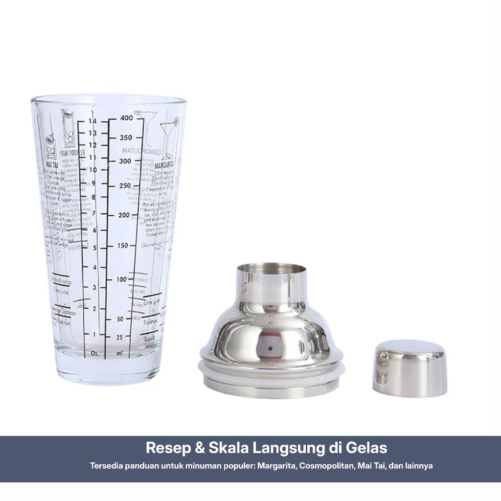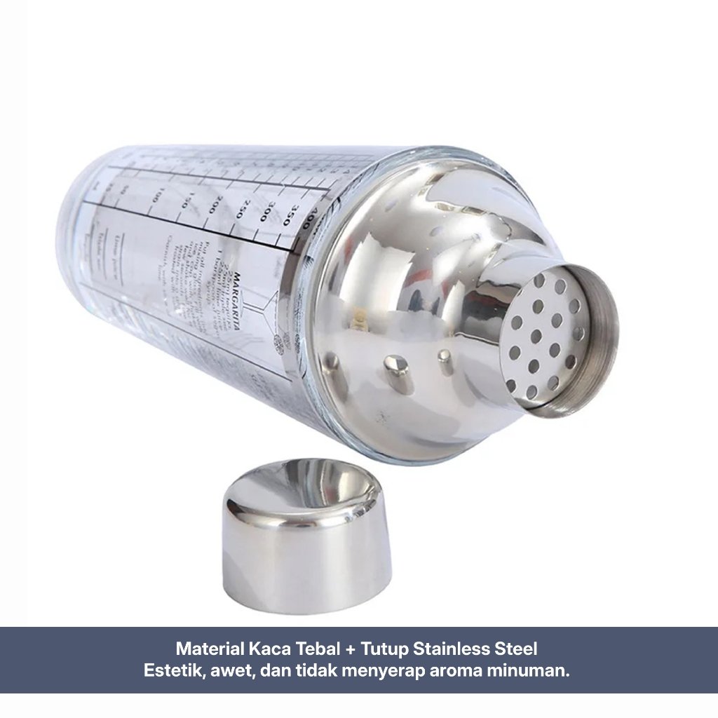 Cocktail Shaker Kaca dengan Resep & Takaran | Tutup Stainless Steel