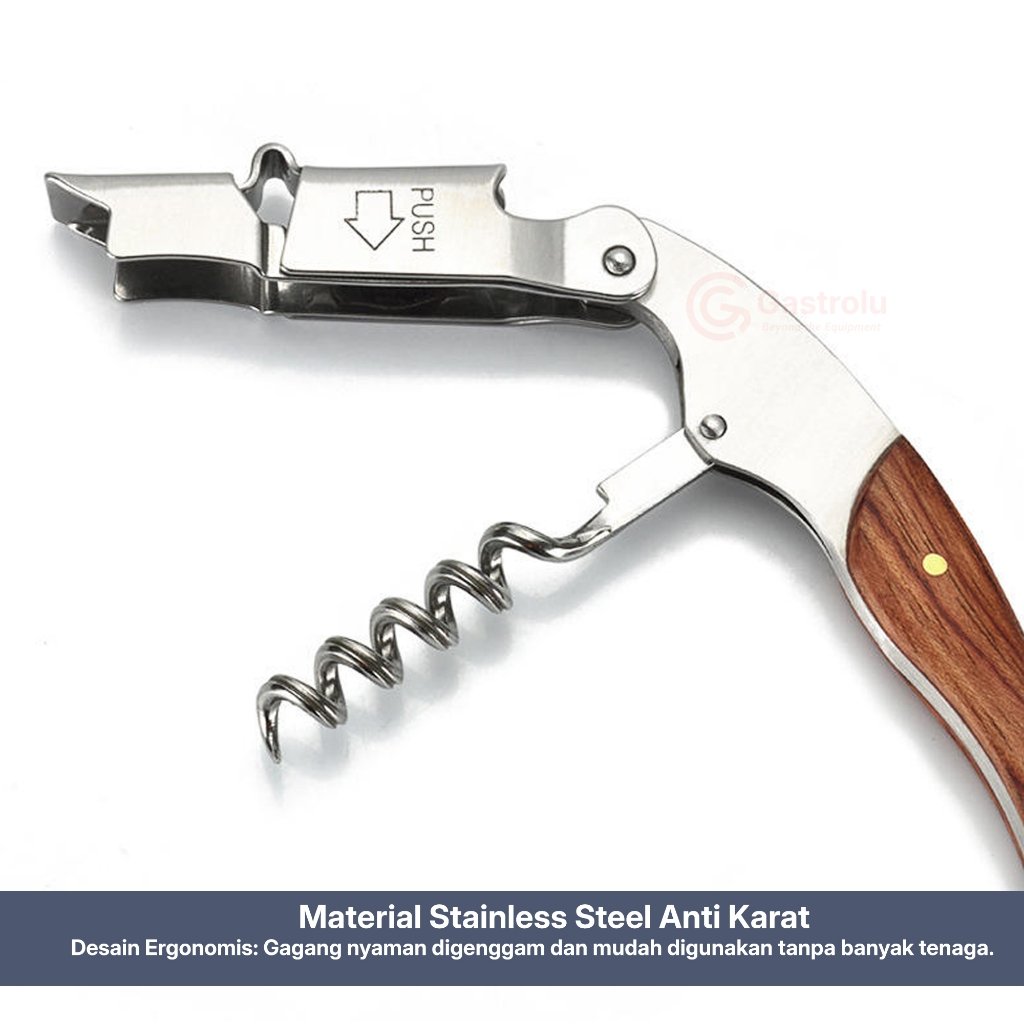 Selain digunakan untuk membuka botol wine, alat ini juga dapat digunakan sebagai pembuka botol minuman lainnya seperti bir atau soda. Cocok digunakan di bar, restoran, café, hotel, maupun untuk penggunaan di rumah.