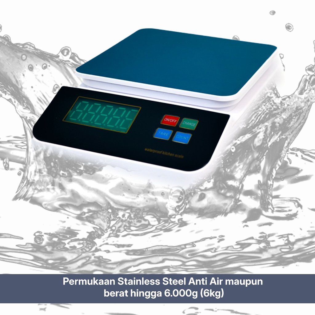 Permukaan timbangan terbuat dari stainless steel yang tahan cipratan air serta mudah dibersihkan setelah digunakan. Desainnya yang kokoh dan stabil membuat timbangan tetap presisi saat menimbang berbagai jenis bahan.