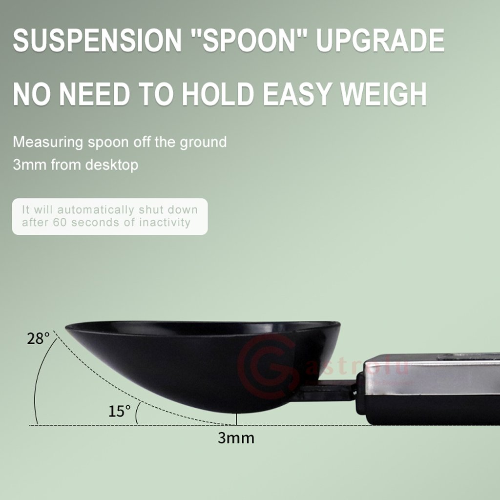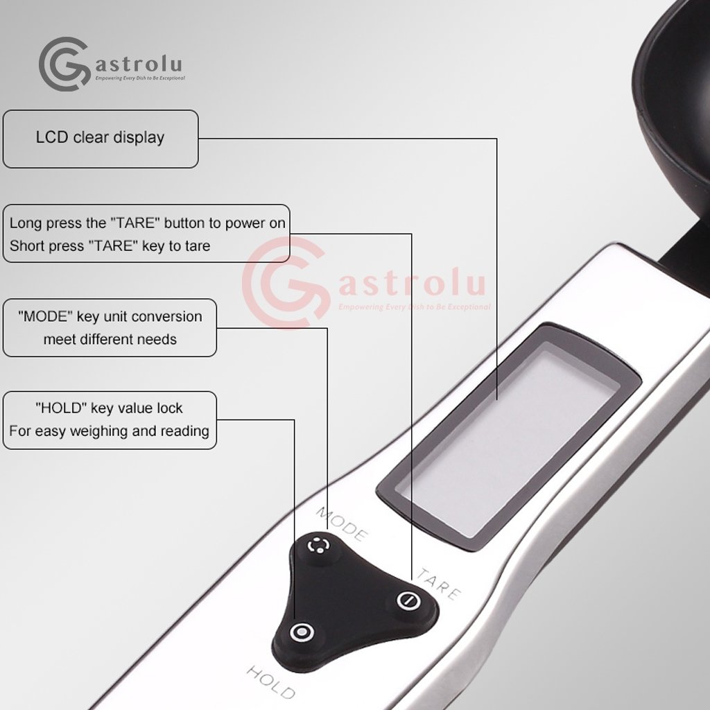 Dilengkapi dengan layar LCD digital yang menampilkan hasil pengukuran dengan jelas dan cepat. Bagian sendok terbuat dari stainless steel food grade yang kuat, aman untuk makanan, dan mudah dibersihkan setelah digunakan.
