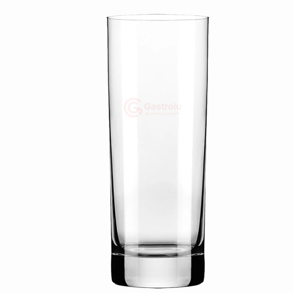 Gelas minum kaca tinggi dengan desain elegan, kokoh, dan proporsional, dirancang untuk kebutuhan bar, cafe, restoran, hingga penggunaan rumahan.