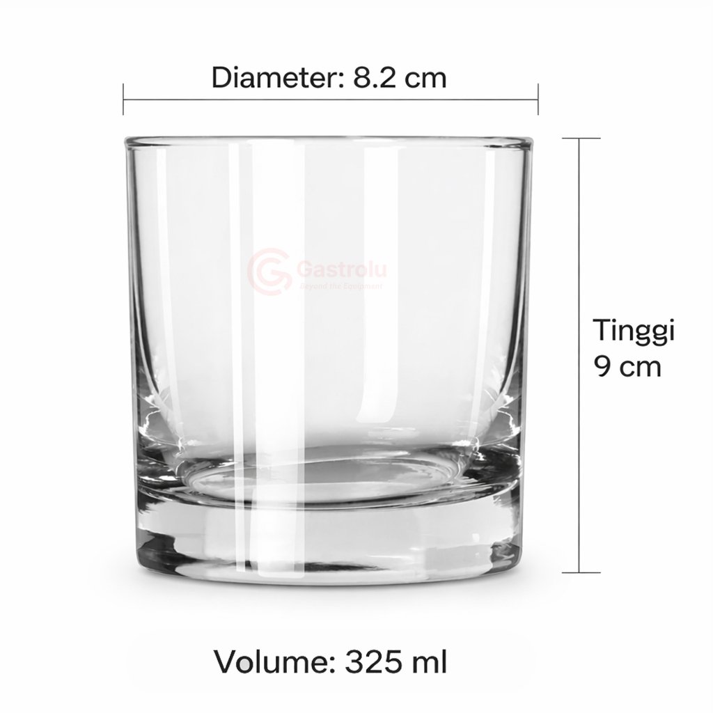 Gelas Old Fashioned dengan desain klasik silinder dan dasar tebal, dirancang untuk penyajian cocktail klasik, whisky, dan minuman ber-es di bar, cafe, restoran, hingga hotel dan lounge.