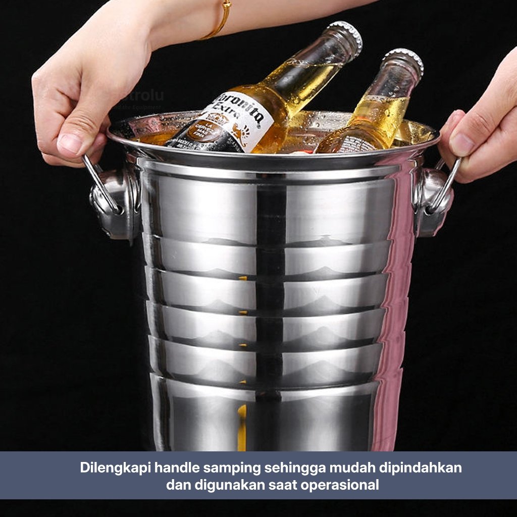 Ice Bucket berbahan stainless steel yang dirancang untuk menyimpan es batu dan mendinginkan botol minuman seperti bir, soft drink, wine, atau spirit. Cocok digunakan di bar, café, restoran, hotel, event, hingga home party.