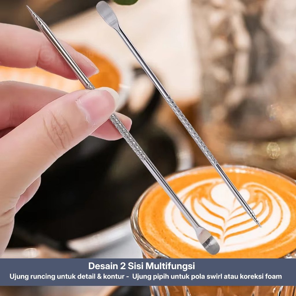 Latte Art Pen 2 Sisi – Alat Gambar Latte Art Barista Stainless Steel | Precision Drawing Tool