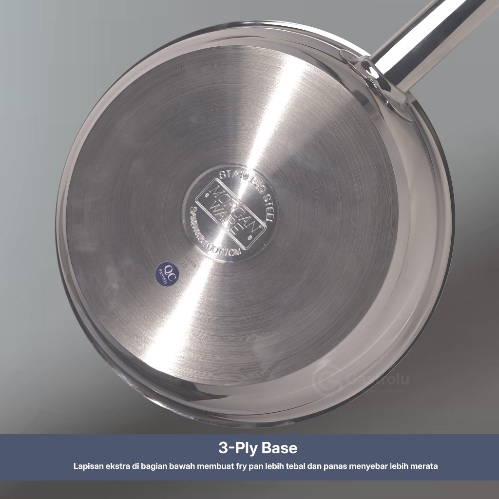 MorganWare Fry Pan Stainless Steel SUS 304 3-Ply Base Professional Cookware Series
