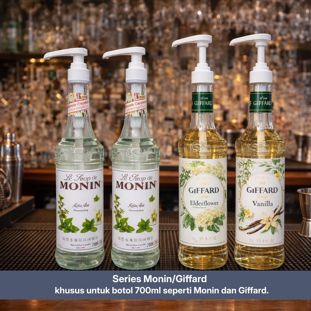 Dirancang khusus untuk botol sirup Monin & Giffard ukuran 700ml.