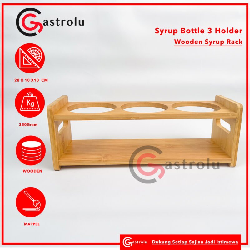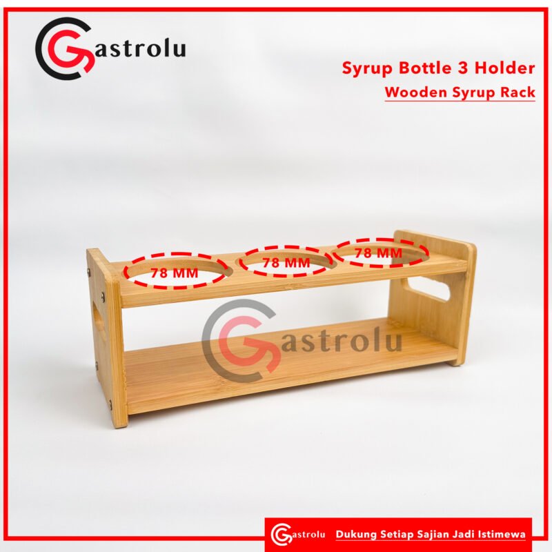 Rak kayu bambu untuk 4 botol sirup berukuran 700ml–1L. Dirancang untuk menata botol Monin, Torani, Giffard agar area bar lebih rapi dan profesional. Cocok untuk coffee shop maupun penggunaan rumahan.