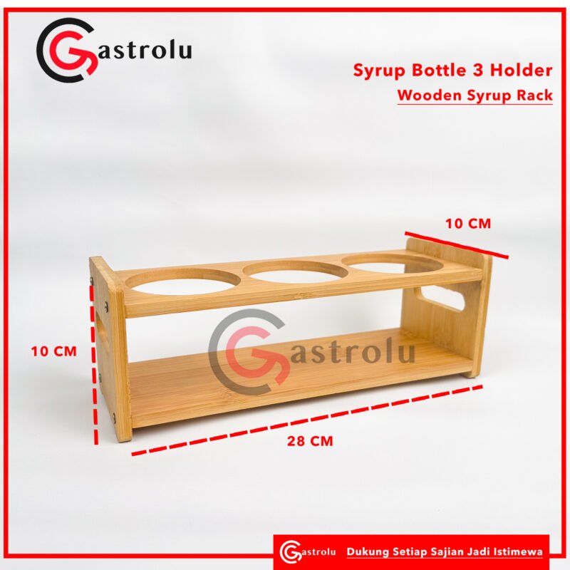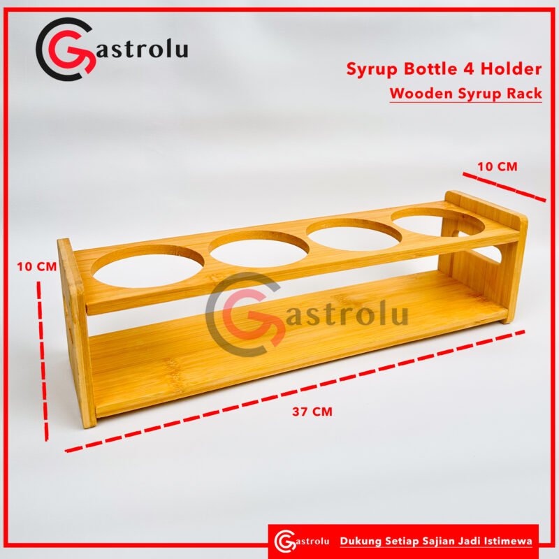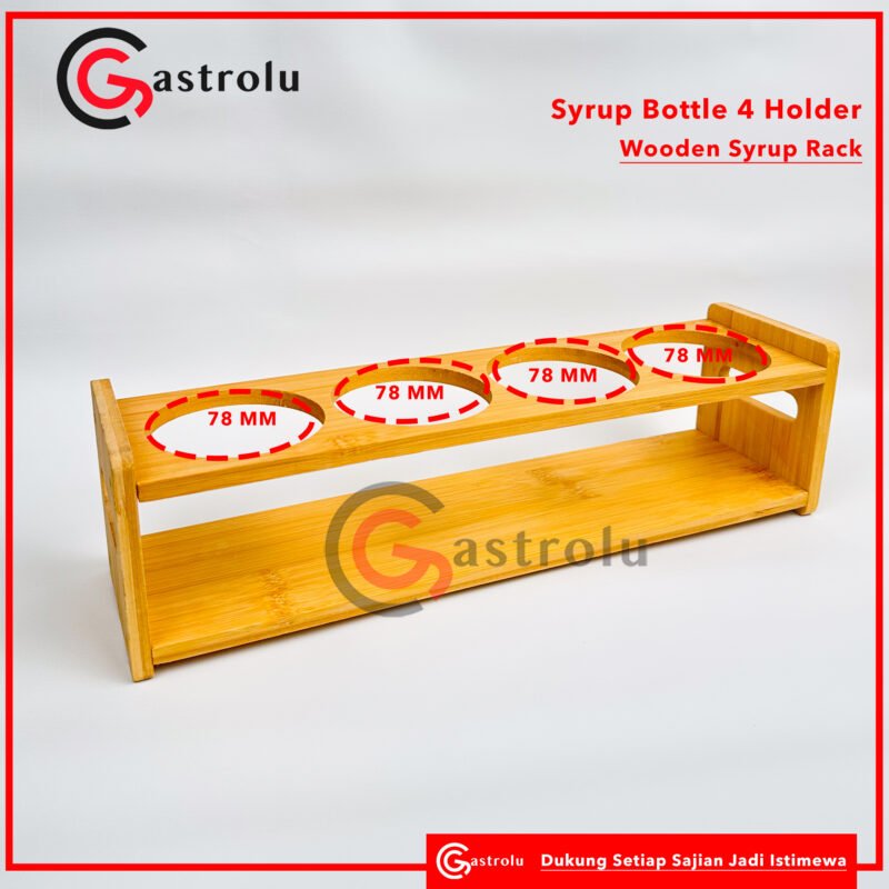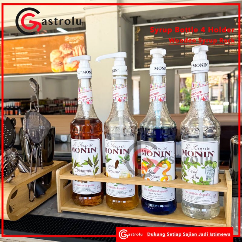 Rak Botol Sirup Kayu Bambu 4 Slot – Syrup Bottle Stand Monin / Torani | Rak Botol Barista