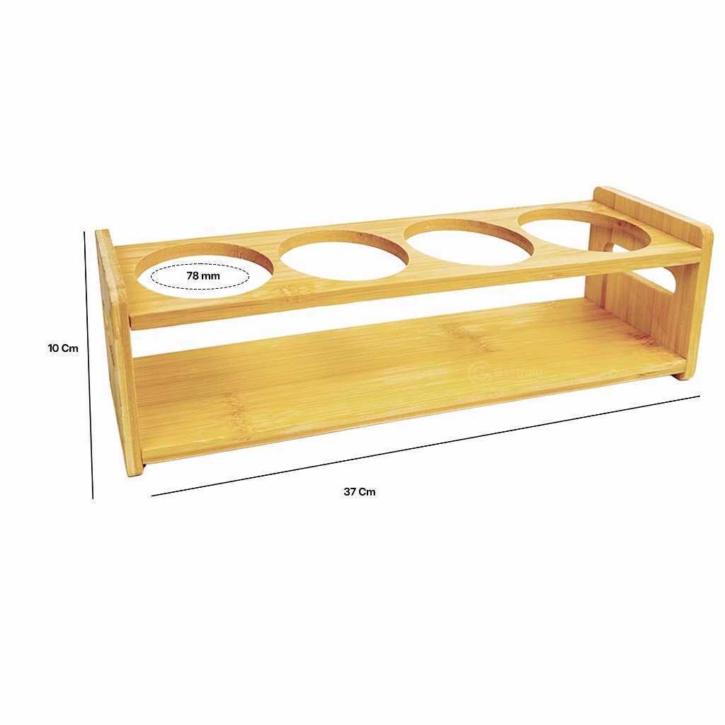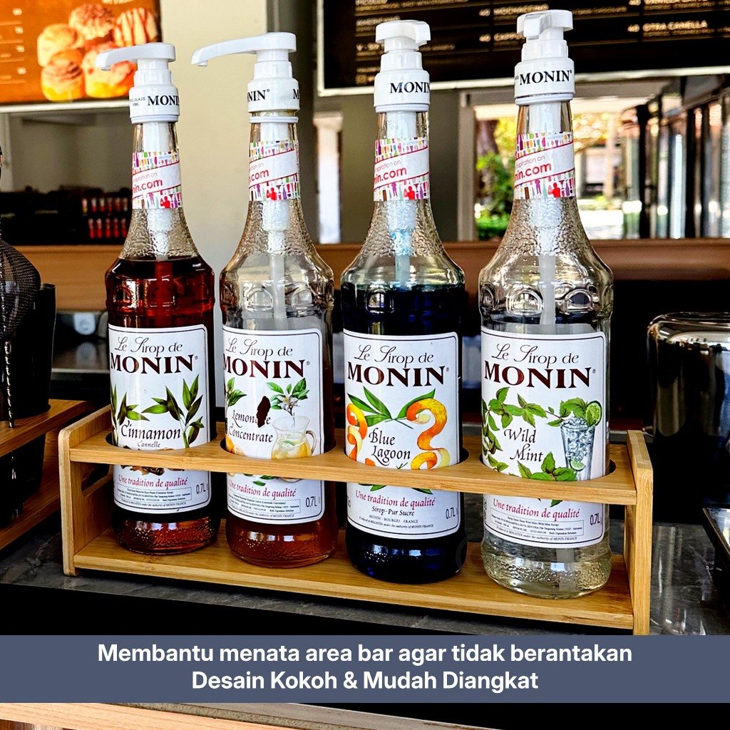 Rak Botol Sirup Kayu Bambu 4 dan 3  Slot – Organizer Botol Monin / Torani untuk Coffee Shop & Bar