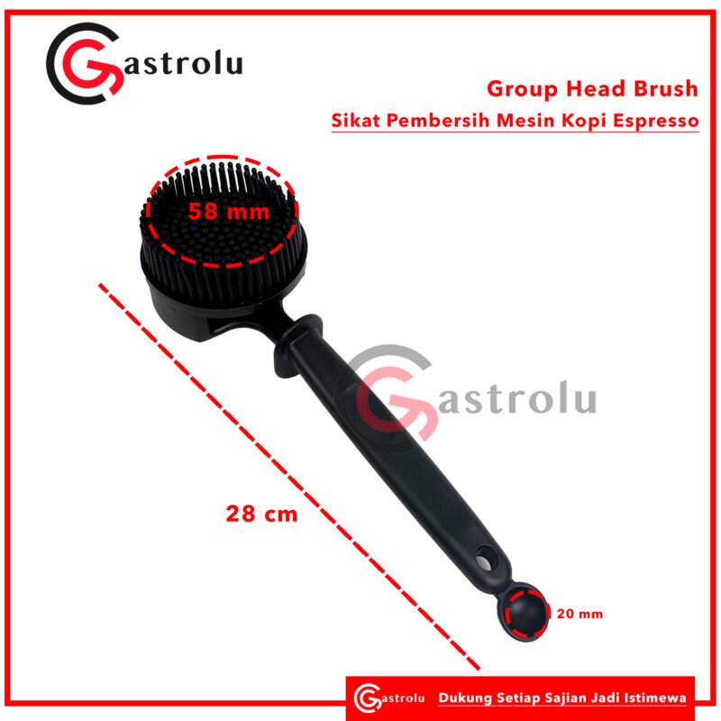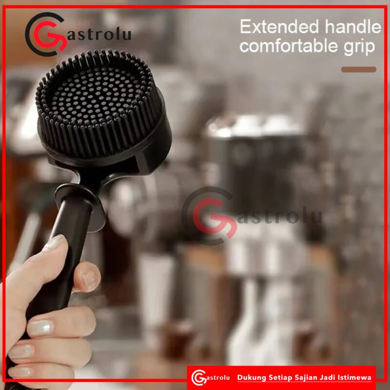 Sikat pembersih ini adalah alat wajib bagi barista untuk menjaga kebersihan mesin espresso. Didesain khusus untuk membersihkan area group head dari sisa kopi dan minyak, dengan ujung bulat dan bulu karet yang aman untuk permukaan logam. Dilengkapi takaran kecil di ujung gagang untuk memudahkan dosing bubuk pembersih.