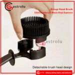 Sikat pembersih ini adalah alat wajib bagi barista untuk menjaga kebersihan mesin espresso. Didesain khusus untuk membersihkan area group head dari sisa kopi dan minyak, dengan ujung bulat dan bulu karet yang aman untuk permukaan logam. Dilengkapi takaran kecil di ujung gagang untuk memudahkan dosing bubuk pembersih.