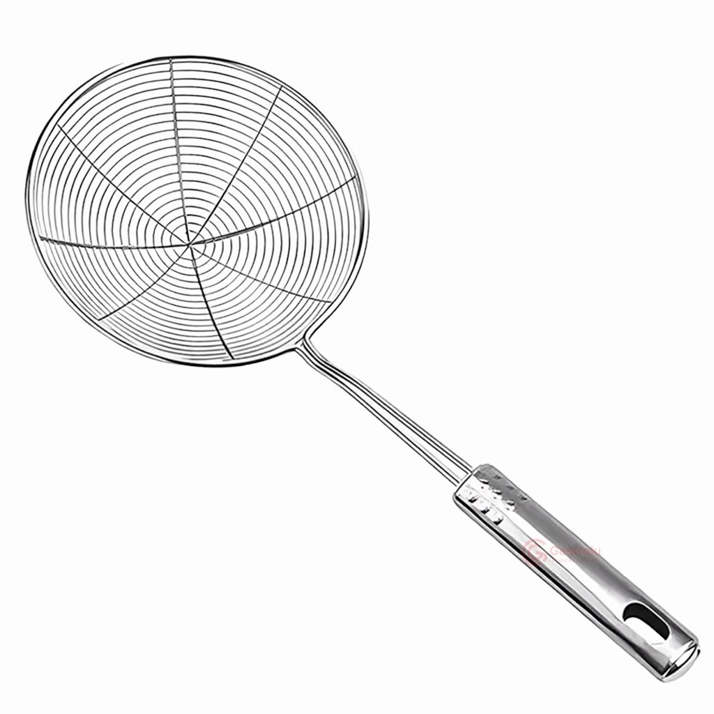Stainless Skimmer Ladle adalah alat dapur yang dirancang untuk mengangkat gorengan, menyaring minyak panas, serta memisahkan makanan dari minyak atau kuah dengan lebih mudah dan higienis.