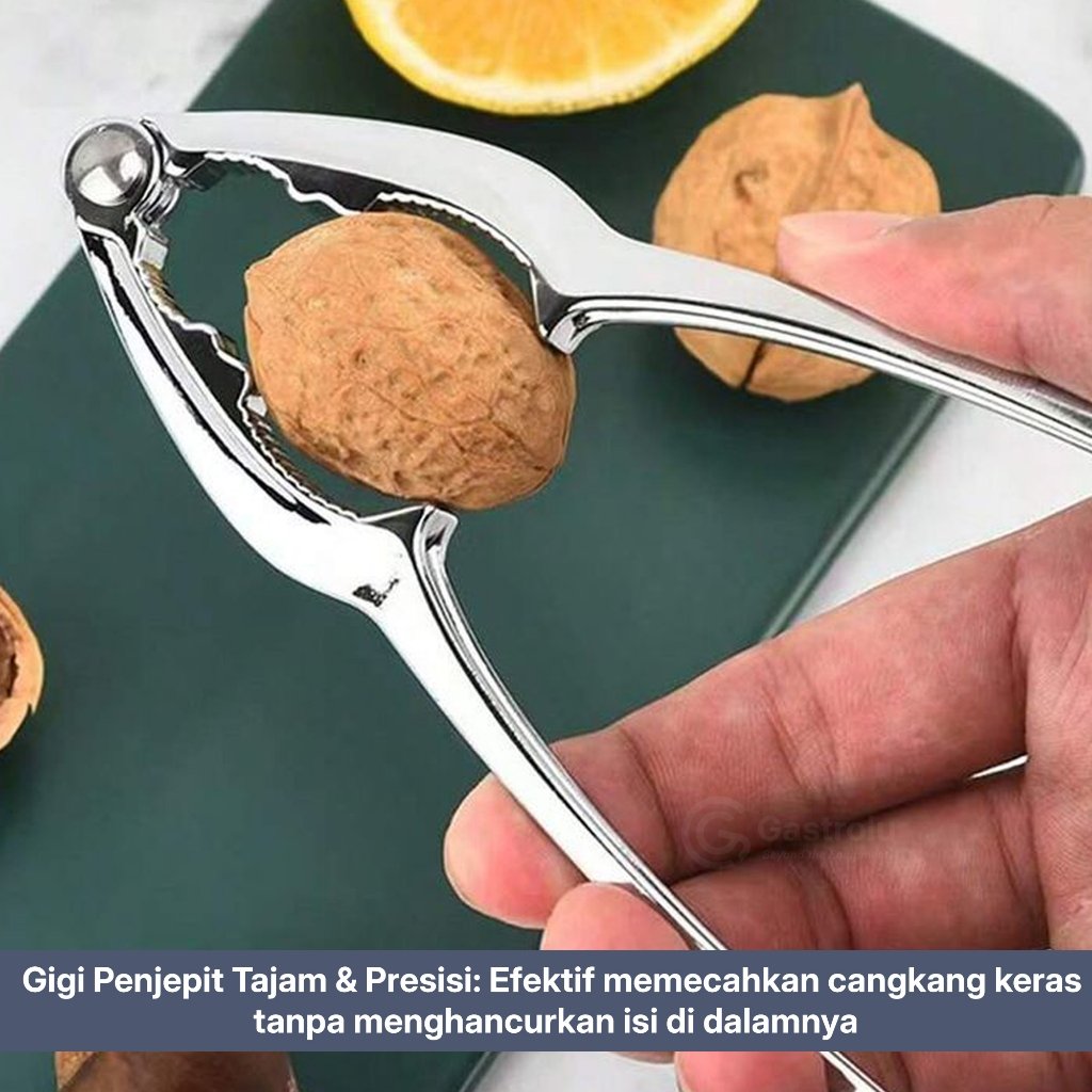 Terbuat dari stainless steel berkualitas yang kuat, tahan karat, dan aman untuk kontak dengan makanan. Desain penjepit dengan gigi presisi membantu memecahkan cangkang keras secara efektif tanpa merusak isi di dalamnya.